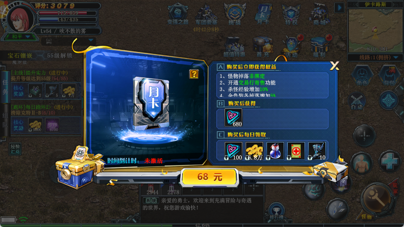 2.【月光契约】:需 128 元。除了拥有随身仓库功能外,还开启了自动回收和自动买药功能。自动回收能将玩家背包里的低级装备、材料等自动回收,转化为金币或其他有用资源,避免背包满溢影响游戏体验;自动买药功能则可根据玩家设定的生命值、魔法值阈值,自动购买并使用药品,确保角色在战斗中保持良好状态 。