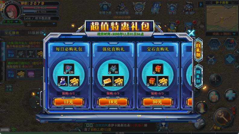 3.臻品宝石礼包:定价 6480 元。礼包内包含 3 级镶嵌宝石,这些宝石具有强大的属性加成效果,镶嵌在装备上后,能大幅提升装备的属性,进而增强角色的整体实力。当玩家在后期获得强力装备后,购买此礼包可以进一步挖掘装备潜力,让角色在战斗中更具优势,在 PVP 对战或高难度副本挑战中脱颖而出 。