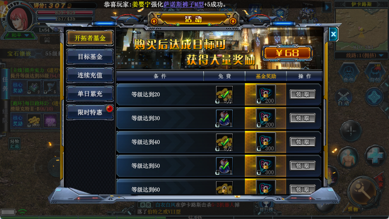 ·奖励机制:开通后完成基金内设定的任务,就能获得保护卡、强化石等奖励。保护卡可在强化装备时防止装备失败损坏;强化石则是提升装备等级的关键道具。